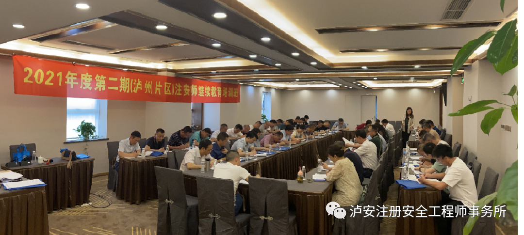 2021年5月11日至5月14日,由四川矿山安全技术培训中心和泸州市泸安注册安全工程师事务所有限公司联合举办的2021年度第二期(泸州片区)注册安全工程师继续教育培训圆满结束,来自泸州市各行业领域的60余名注册安全工程师参加了培训。